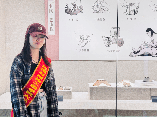 活动现场,参与者以小组形式展开“五行寻物挑战”,在博物馆展厅中寻找对应元素的文物,结合测绘专业的空间定位技能完成文物坐标标记,并通过短视频记录解读过程。为增强文化体验的互动性,学生会将专业特色融入实践环节:环境工程专业学生分析陶鼎烧制温度与土壤成分的关系,测绘团队利用三维建模技术复原汉代灰陶瓮的成型工艺。在“文物工坊”体验区,学生们亲手用陶土捏制仿古器皿,一位参与学生感叹:“触摸陶土时,突然理解了‘土载四行’的厚重感——它不仅是材质,更是文明传承的根基。”