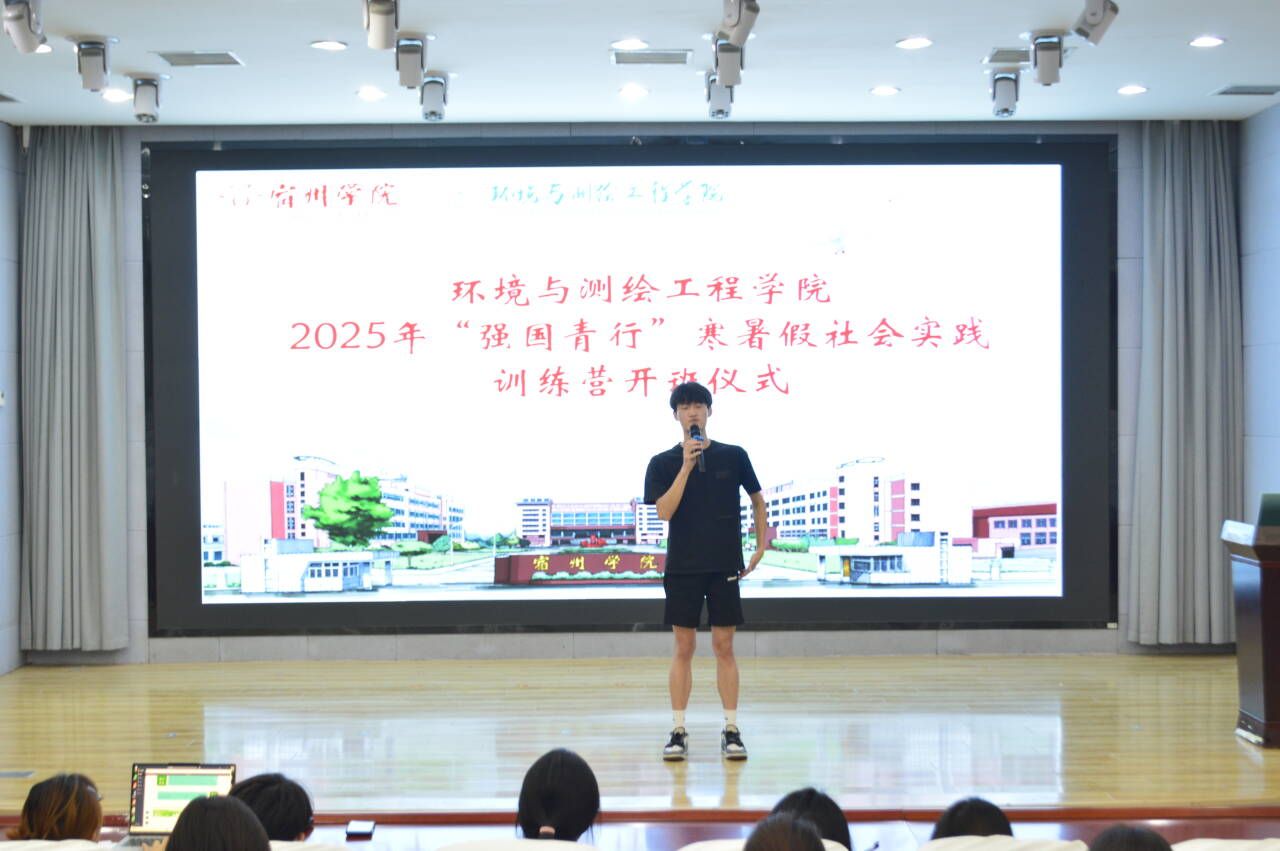 为推动大学生社会实践工作,增强青年服务社会、了解国情的责任意识,6月13日中午,环境与测绘工程学院在工科楼招聘大厅举行“强国青行”寒暑假社会实践训练营开班仪式。开班式由学院分团委书记杨文主持。