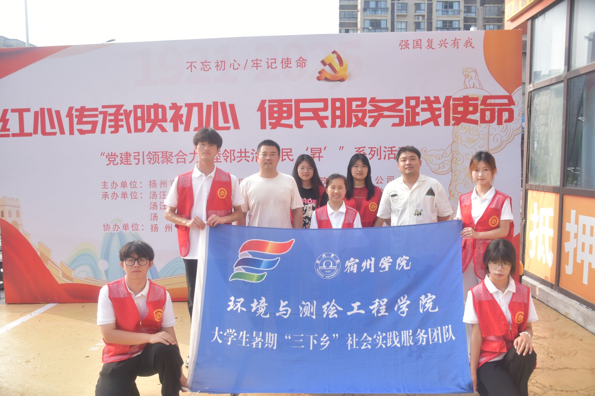 为深度挖掘中国大运河文化的历史底蕴与当代价值,系统梳理宿州与扬州两地运河文化的内在联系及地域差异,在扬州工业职业技术学院的协调支持下,7月10日,两院师生携手走进扬州汤汪街道东昇花园社区,联合举办了主题为“红心传承映初心 便民服务践使命”的志愿服务活动。