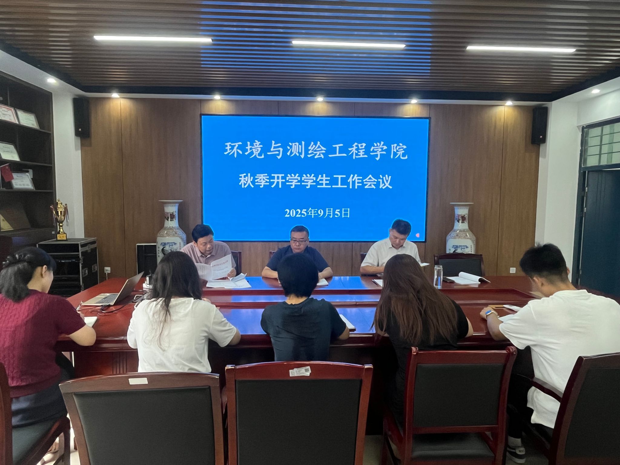 9月5日上午,环测学院在会议室召开2025年秋季开学学生工作会议。环测学院党委书记蔡若愚,党委副书记、院长张海洋,党委副书记、纪委书记李建新,全体辅导员参加会议。