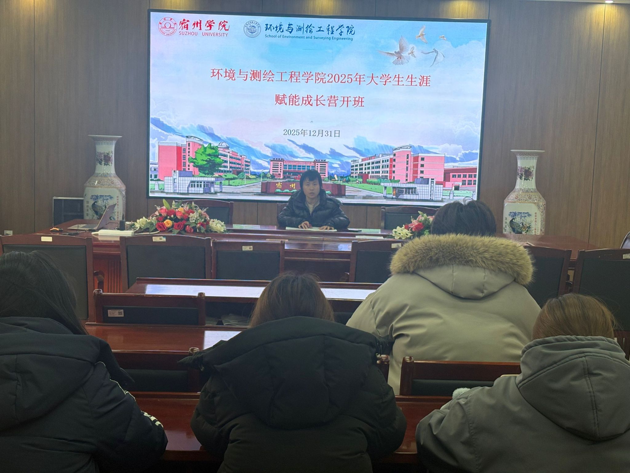 为切实提升学生生涯规划能力,助力学生明晰未来发展方向,12月31日,环境与测绘工程学院精心组织的“大学生生涯赋能成长营”开班仪式成功举办。分团委书记杨文及全体成长营学员共同参与本次活动。