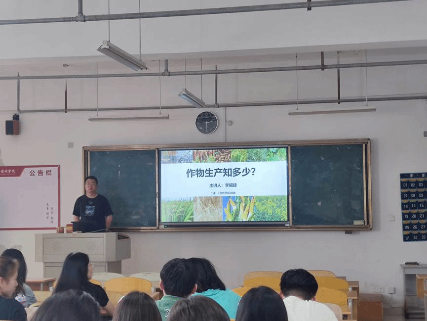 2023年6月14日,李福建博士在实习实训楼A503做题为“作物生产知多少?”的学术报告,地理科学相关专业学生参加了此次讲座。