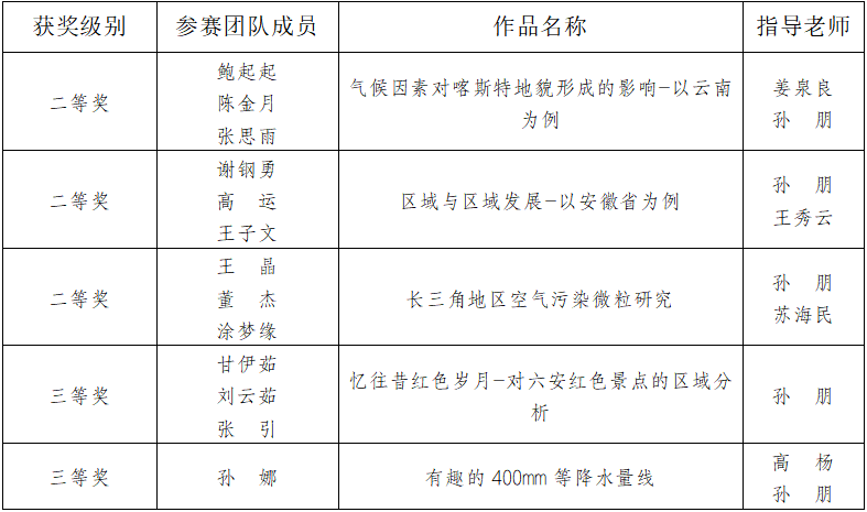 自2023年3月比赛启动以来,环测学院高度重视本次活动,广泛宣传,营造竞赛氛围,在2019、2020和2021级地理科学专业学生中组织初赛,从众多作品中选拔出五组优秀作品参加国赛。最终,五支队伍的参赛作品在决赛中取得良好成绩。本次制图大赛,真正体现了地理信息技术在地理教学中的应用,落实了地理课程核心素养要求,有效提升了地理科学专业师范生的信息技术素养。